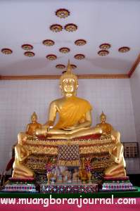 พร้อมพระอัครสาวกซ้ายขวา ด้านหลังมีพระพุทธรูปขนาดย่อมอีกสององค์